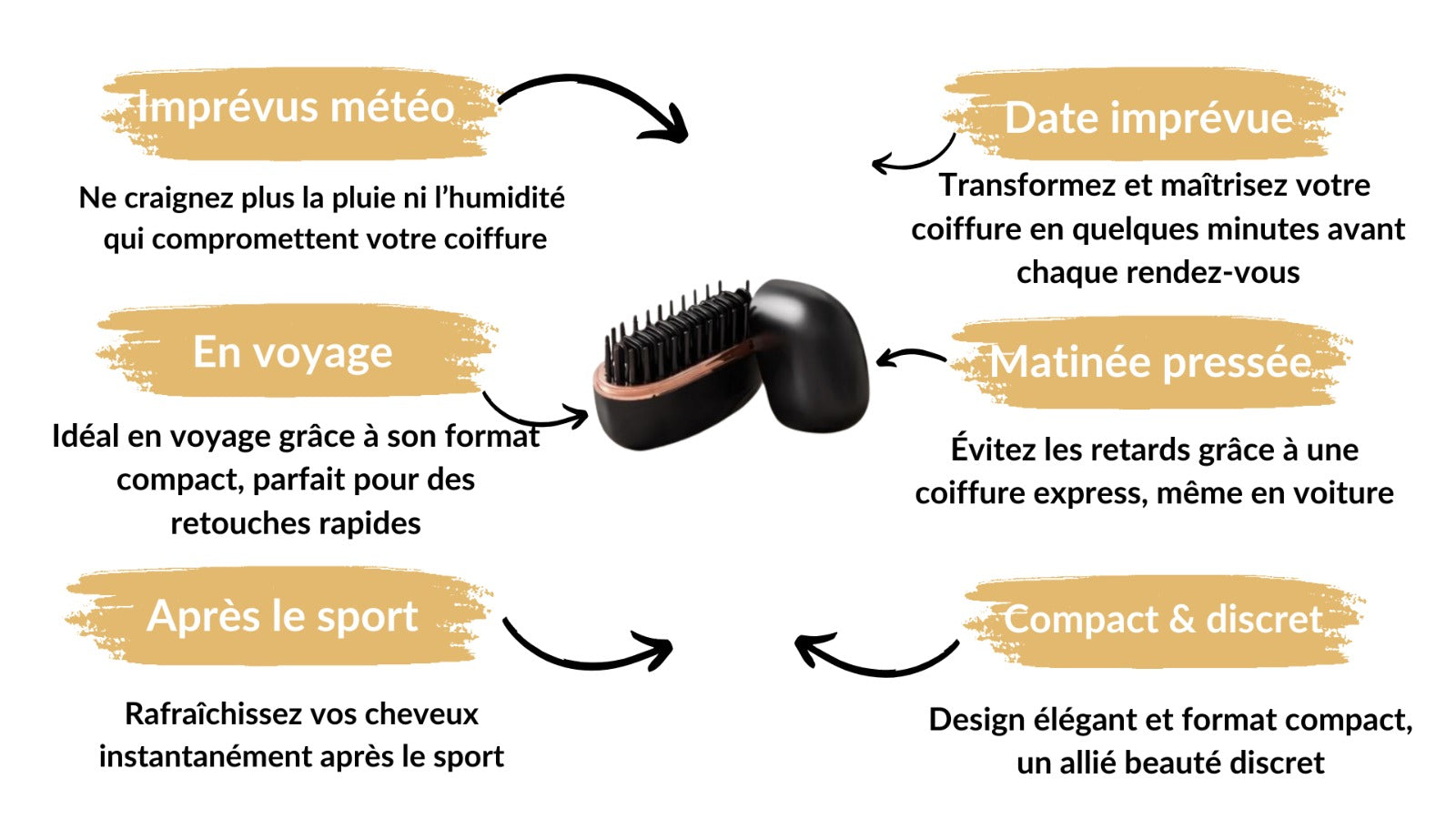 Découvrez pourquoi notre brosse est le seul choix qui combine beauté, performance et portabilité.