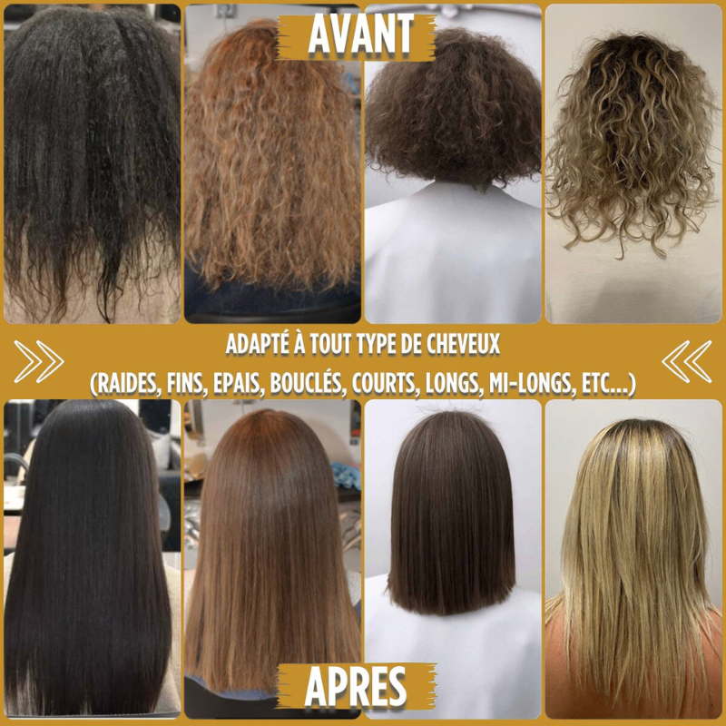 Obtenez des cheveux lisses, soyeux et brillants, peu importe votre texture capillaire. Dites adieu aux frisottis et aux mèches rebelles, et bonjour à un look impeccable !